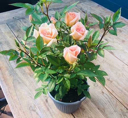 The Flower Carpet range is a good example of roses that do very well planted in pots. It is important to replace the soil in the pots during winter, and to feed them during the year as it takes a lot of food and energy to grow the bush during the year. Then at pruning time we remove it all!