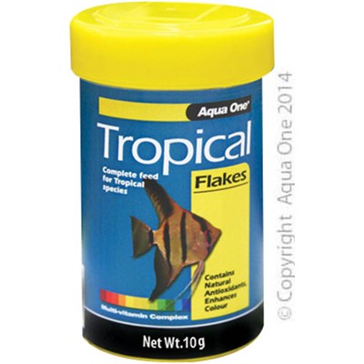 Aqua One Tropical Flakes are intended for the daily feeding of all speciesof Tropical Fish. They are specially formulated to be easily digested byyour fish, providing them with the essential vitamins and minerals theyneed to thrive within your aquarium whilst enhancing their naturalcolours.