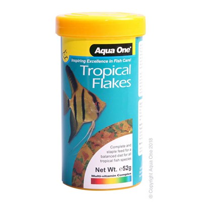 Aqua One Tropical Flakes are intended for the daily feeding of all speciesof Tropical Fish. They are specially formulated to be easily digested byyour fish, providing them with the essential vitamins and minerals theyneed to thrive within your aquarium whilst enhancing their naturalcolours.