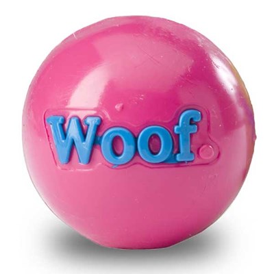 The WOOF Ball is easy to throw, and easy to fetch. The ball is rated 5 out5 chompers on our Durability Scale, making it perfect for tough chewers andfanatical fetchers. Size: one size (76mm) - Chew-o-meter: rated 5 out of 6
